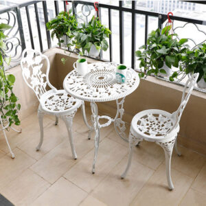 Bộ Bàn Trà Ngoài Trời 2 Ghế Hợp Kim Nhôm Đúc Hoa Hồng Màu Trắng